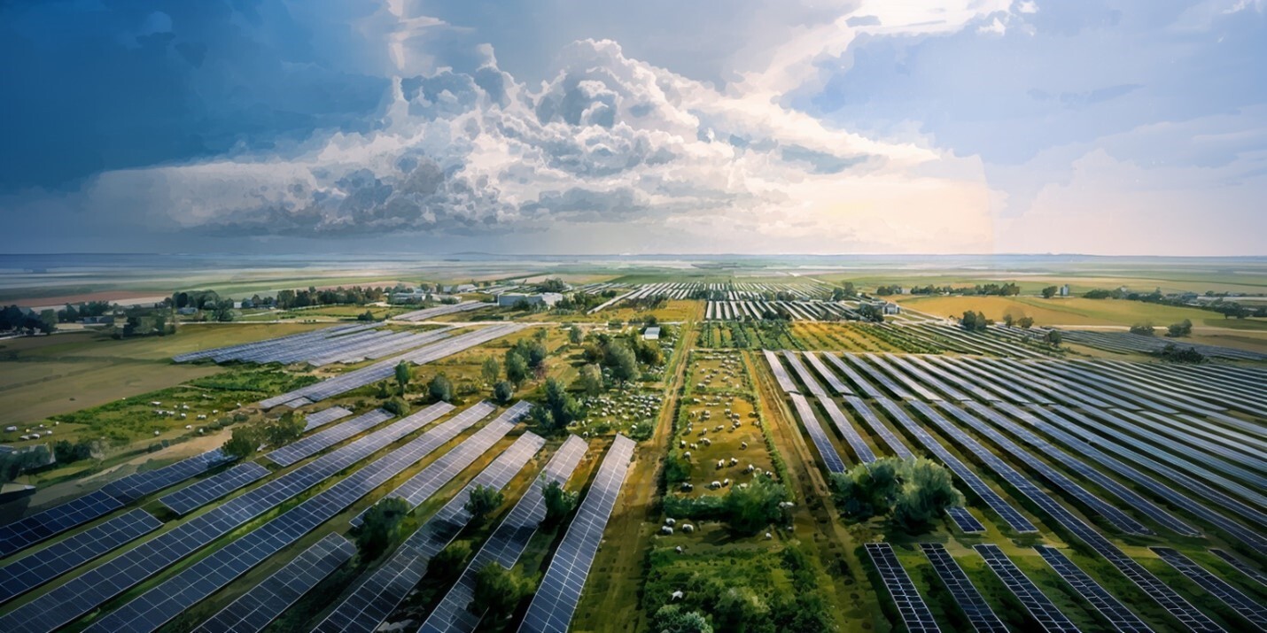 Text-to-image generative AI was used to convert concepts that emerged from the horizon scan into rural landscape visualizations. Here, solar panels and farming work together in agrivoltaics.